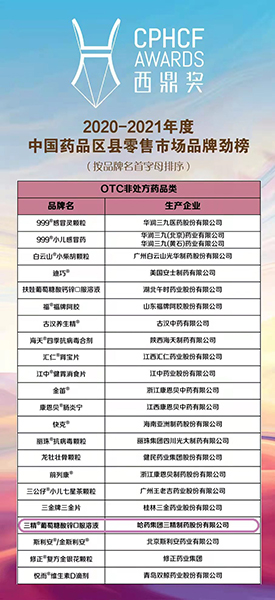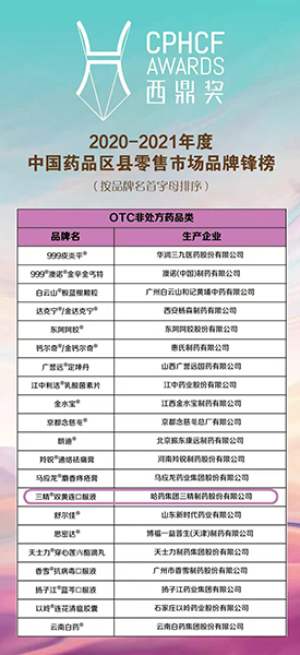 2021年度中国化学制药行业OTC优秀产品品牌