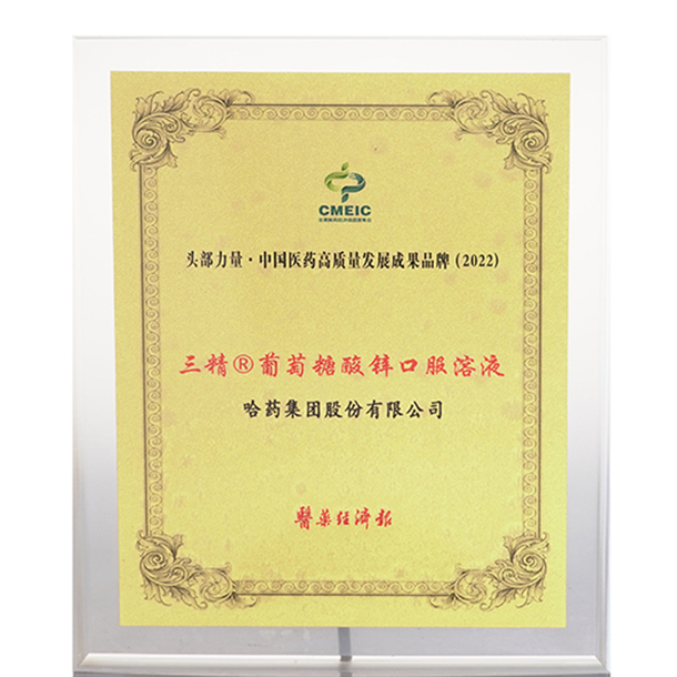 2022头部力量·中国医药高质量发展成果品牌葡萄糖酸锌
