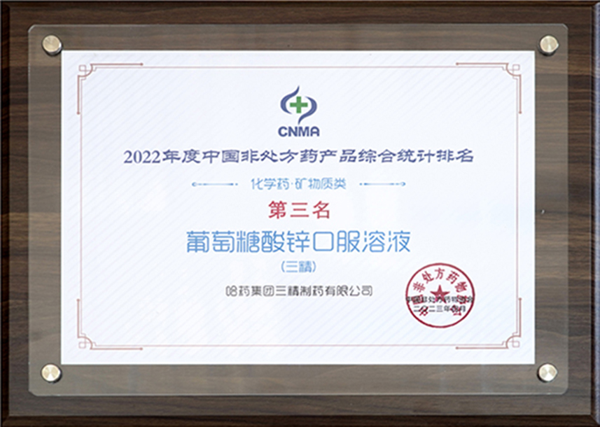 2022年度中国非处方药产品综合统计排名第三名葡萄糖酸锌