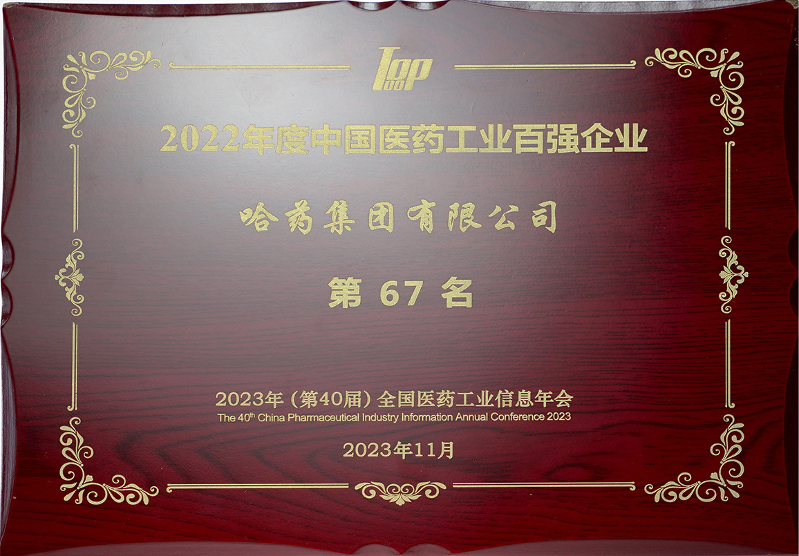 2022年度中国医药工业百强企业67名