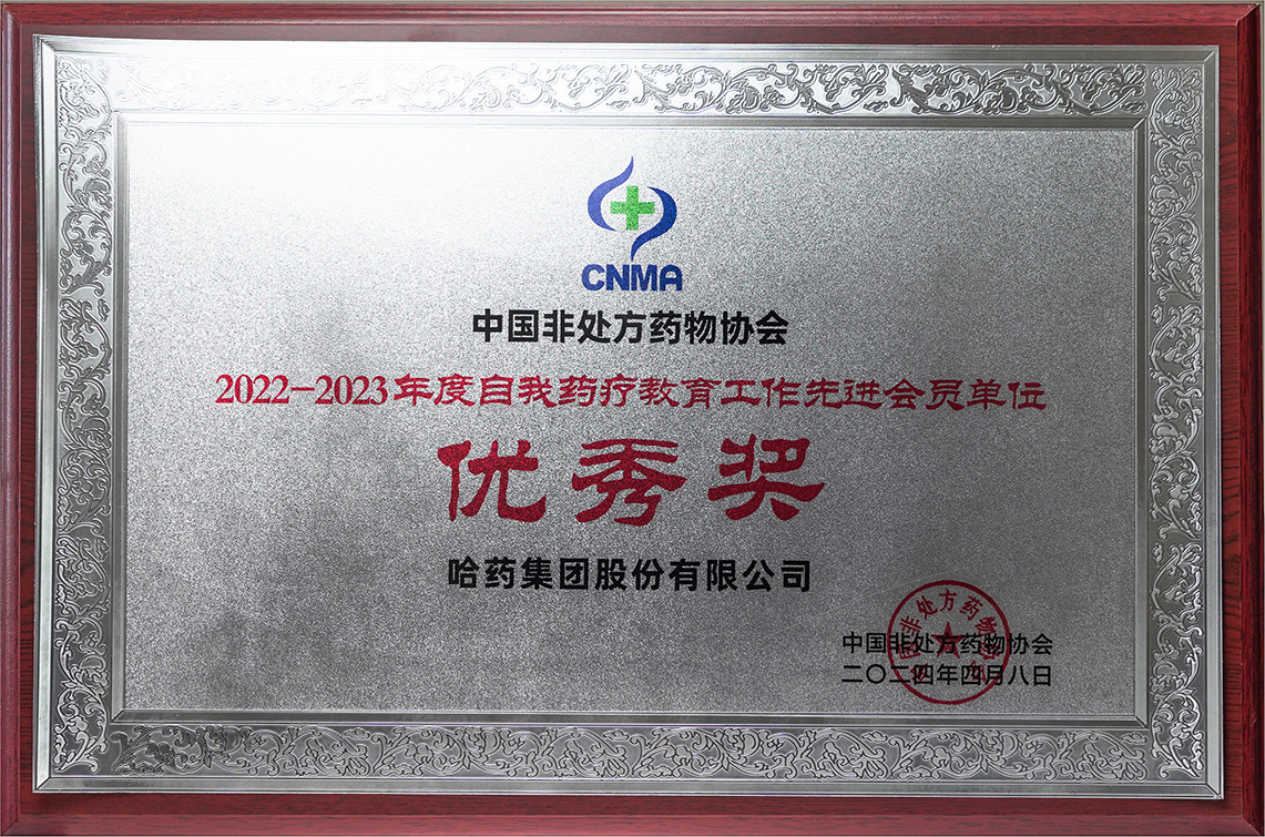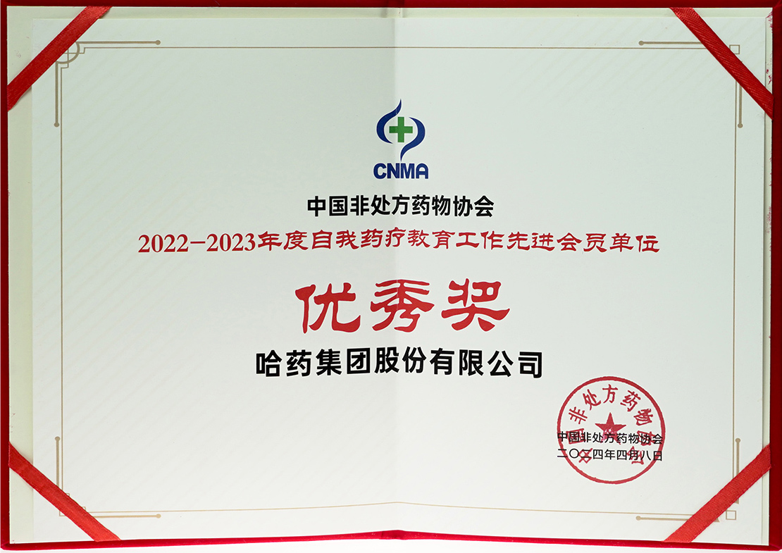 中国非处方药物协会2022-2023年度自我药疗教育工作先进会员单位2